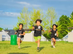 宿泊施設は、定番のテントタイプからコテージまで7つのタイプがあり、好みに合わせて選択可能。食事は、農園で採れた新鮮な野菜をふんだんに使ったBBQや朝食ビュッフェが自慢です。敷地内には天然温泉「かりんの湯」もあり、宿泊者は入り放題なのも嬉しいポイント。ジップラインなどのアクティビティも充実しており、子どもから大人まで一日中楽しめる施設です。