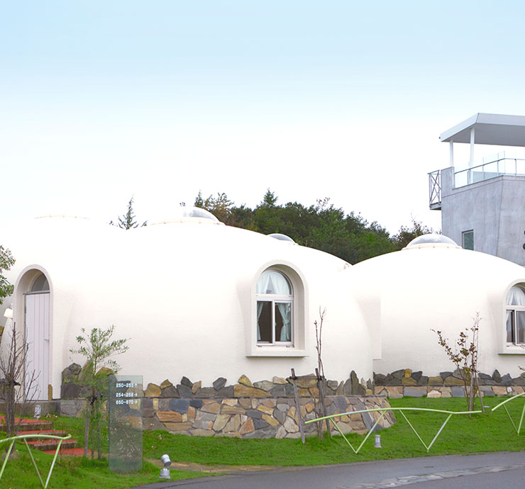 「とれとれヴィレッジ」は、まるで異世界に迷い込んだかのような、ユニークなドーム型の宿泊施設が特徴です。 発泡スチロールでできた客室は一つとして同じ部屋がなく、訪れるたびに新しい発見があります。 ファンタジックな「メルヘンゾーン」と、落ち着いた雰囲気の「ファンタジックゾーン」の2つのエリアから選べます。